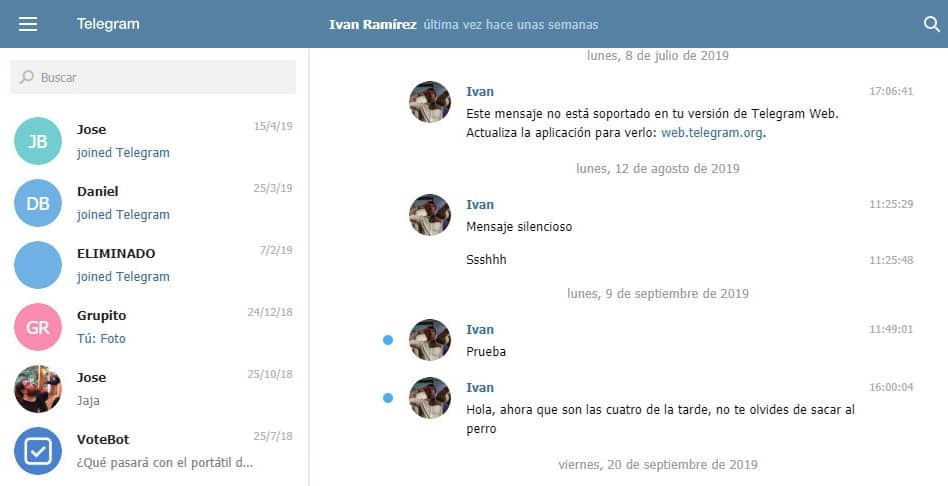 Básicamente desde la página web de Telegram podemos hacer casi lo mismo que en la aplicación, aunque si que es cierto, que algunas funciones no están disponibles, las más importantes si que lo están.